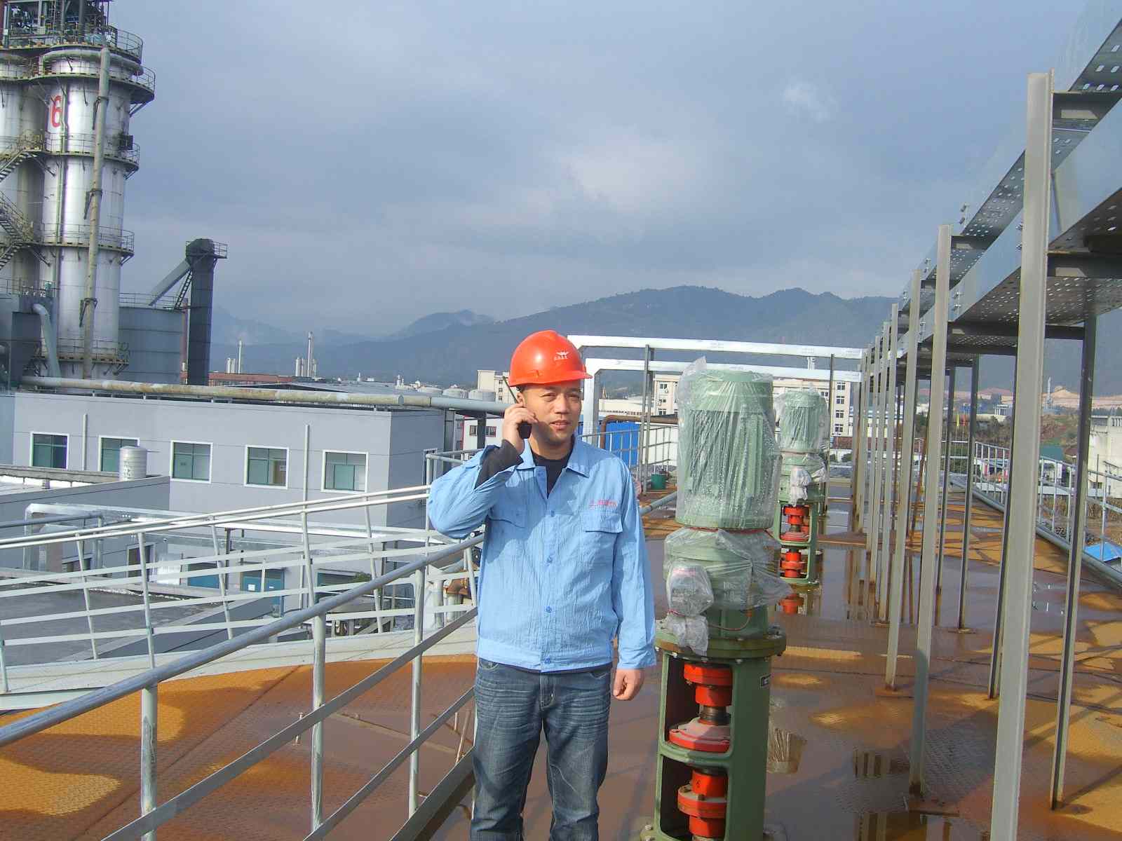 我公司安裝人員用對講機協(xié)調(diào)指揮