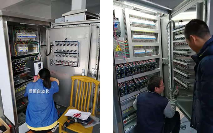 圖為公司技術(shù)人員在為準(zhǔn)備發(fā)往廣州大陵河某凈水廠(chǎng)的PLC自動(dòng)化控制柜作發(fā)貨前的驗(yàn)收