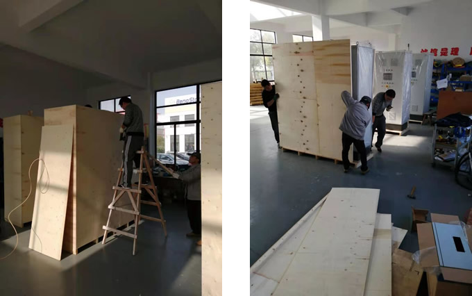 圖為第二生產(chǎn)車(chē)間為即將發(fā)運(yùn)的產(chǎn)品釘包裝箱