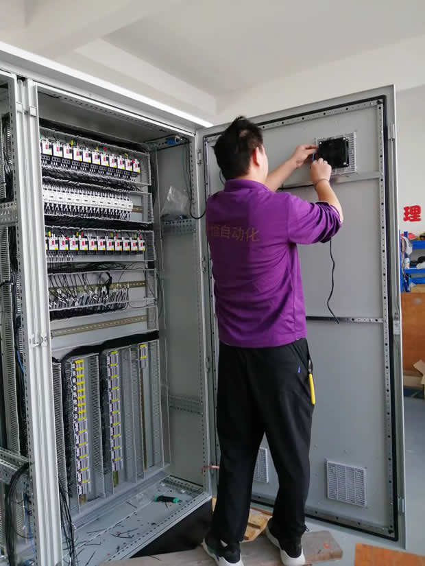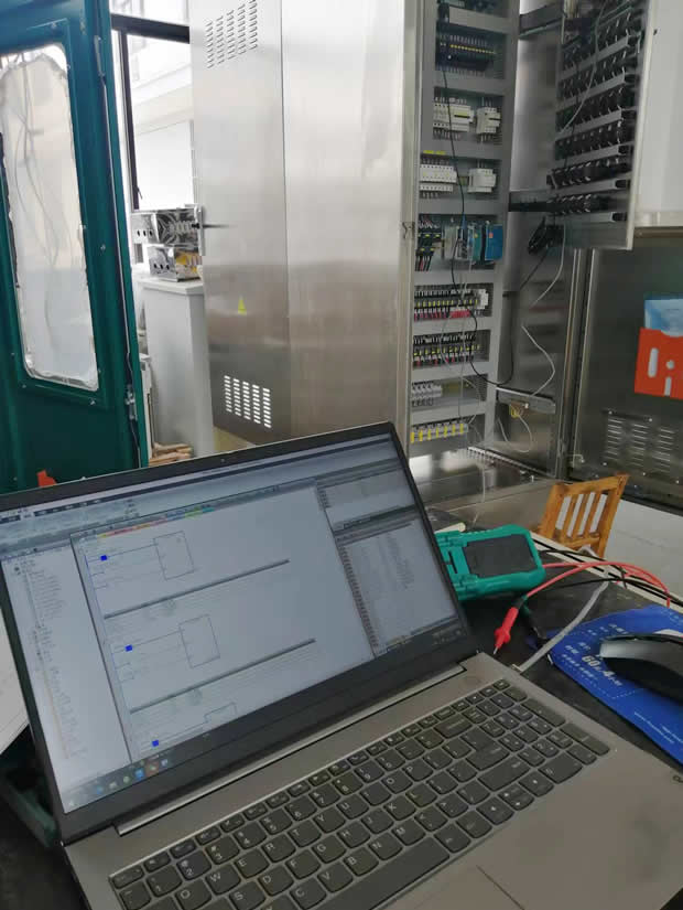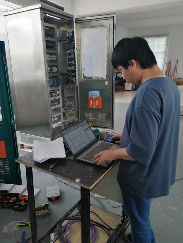 新的控制裝置進(jìn)行出廠前的車間調(diào)試一景